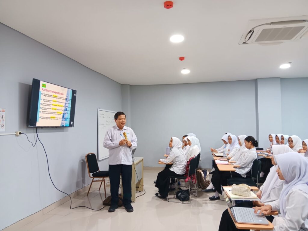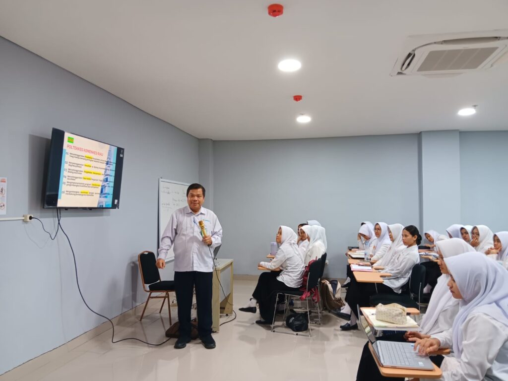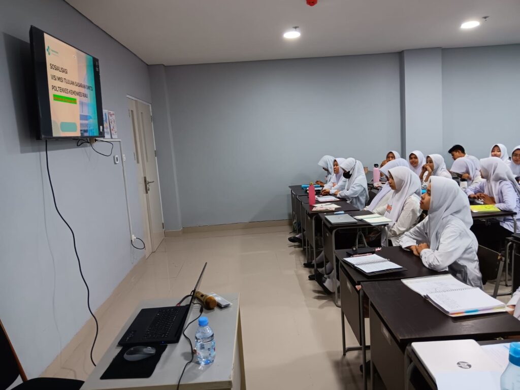 PEKANBARU, 21 Agustus 2025 – Dosen Prodi Sarjana Terapan Keperawatan Politeknik Kesehatan (Poltekkes) Kementerian Kesehatan (Kemenkes) Riau Dr. Ibnu Rusdi menyelenggarakan Sosialisasi Visi, Misi, Tujuan, dan Sasaran (VMTS) institusi kepada mahasiswa Program Studi (Prodi) D4 Keperawatan. Kegiatan yang berlangsung pada tanggal 21 Agustus 2025 ini merupakan bagian dari komitmen Poltekkes untuk memastikan seluruh civitas akademika memahami dan mengimplementasikan arah strategis perguruan tinggi.